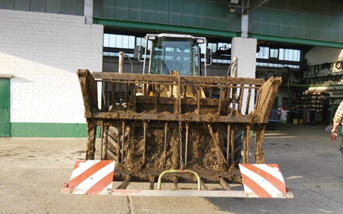 Frontwerkzeuge in unterer Stellung sind kenntlich zu machen und verkehrsgefährdende Teile sind abzudecken.